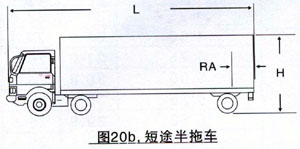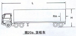 (圖20)是常見貨柜車的樣式及相關尺寸位置,要注意的是,貨車底板高度在裝卸貨過程中會有高達15厘米的變化。氣懸臂系統同樣會影響這些尺寸。(圖20)作為初始設計的參考,最終設計應以量度及調查實際貨車尺寸為準。